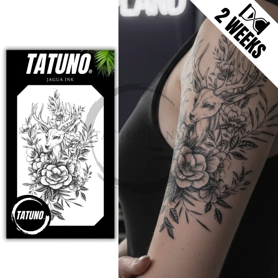 Semipermanentní jagua tetování jelen s květinami [18 cm x 11cm]