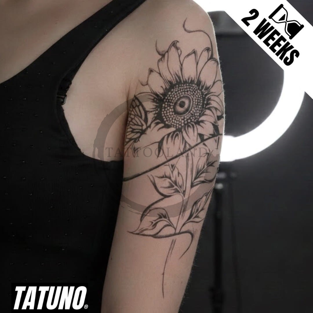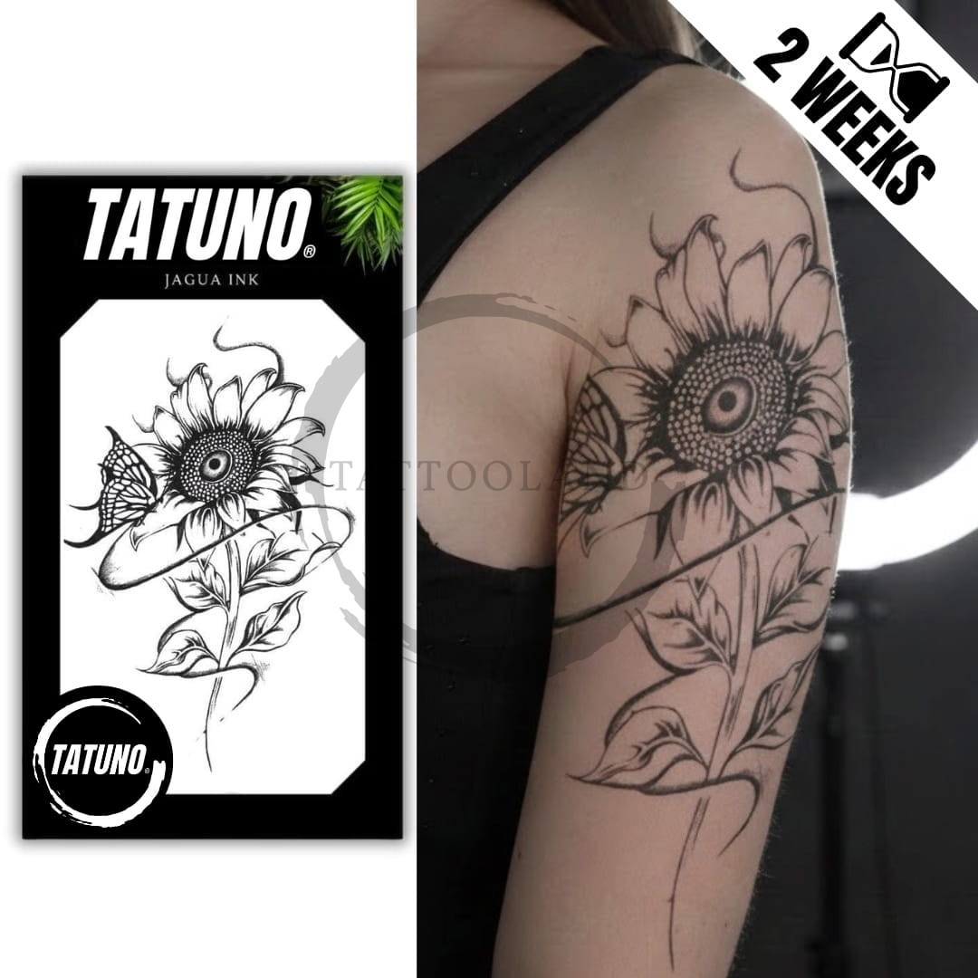 Semipermanentní jagua tetování slunečnice a motýl [18 cm x 11cm]