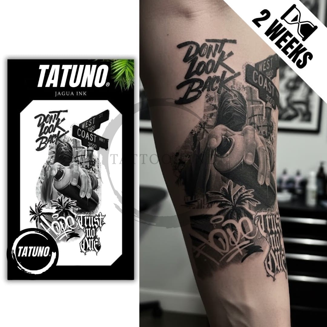 Semipermanentní jagua tetování 'Neohlížej se zpátky' [18cmx11cm]