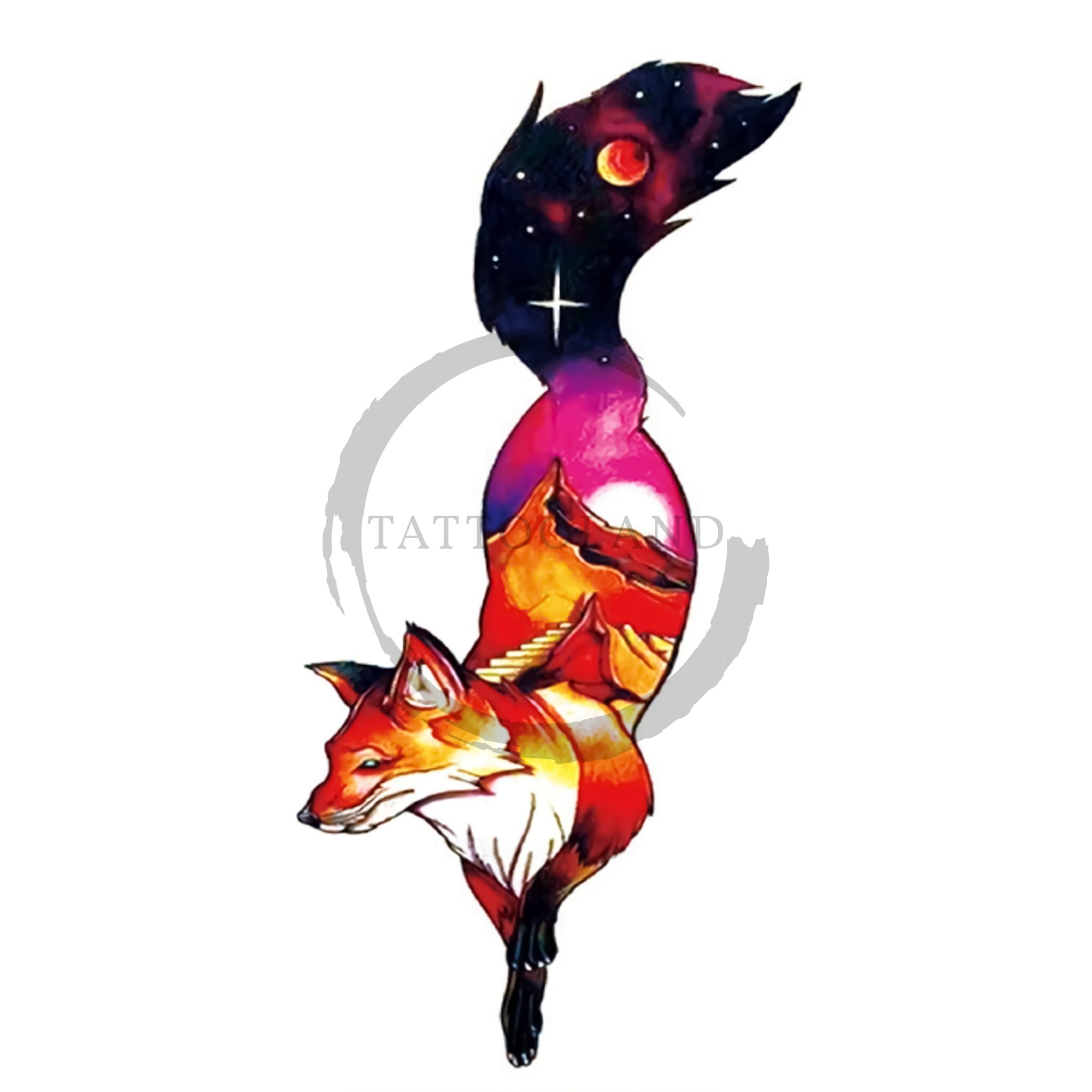 Tetování barevná liška.