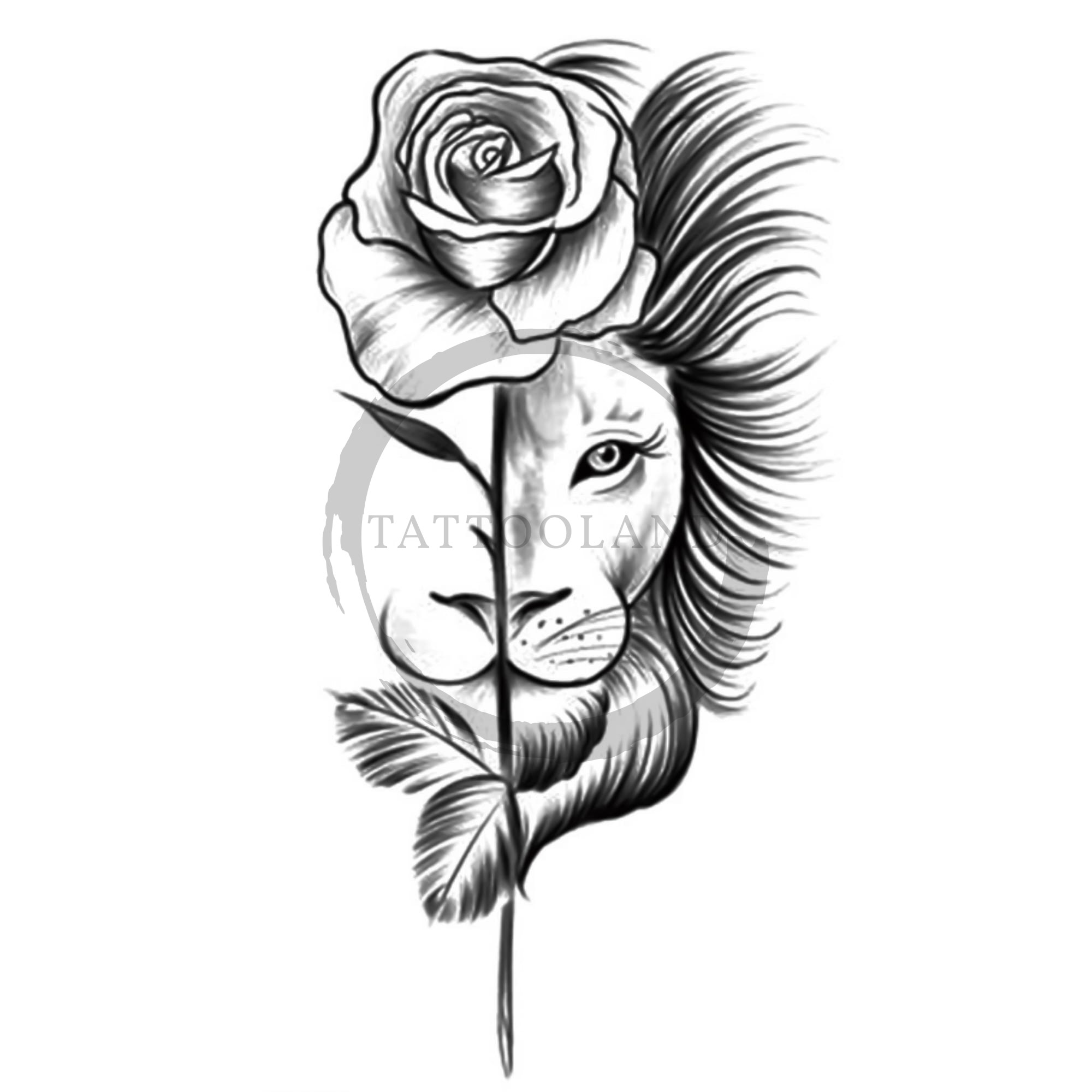 Tetování lev s růží.