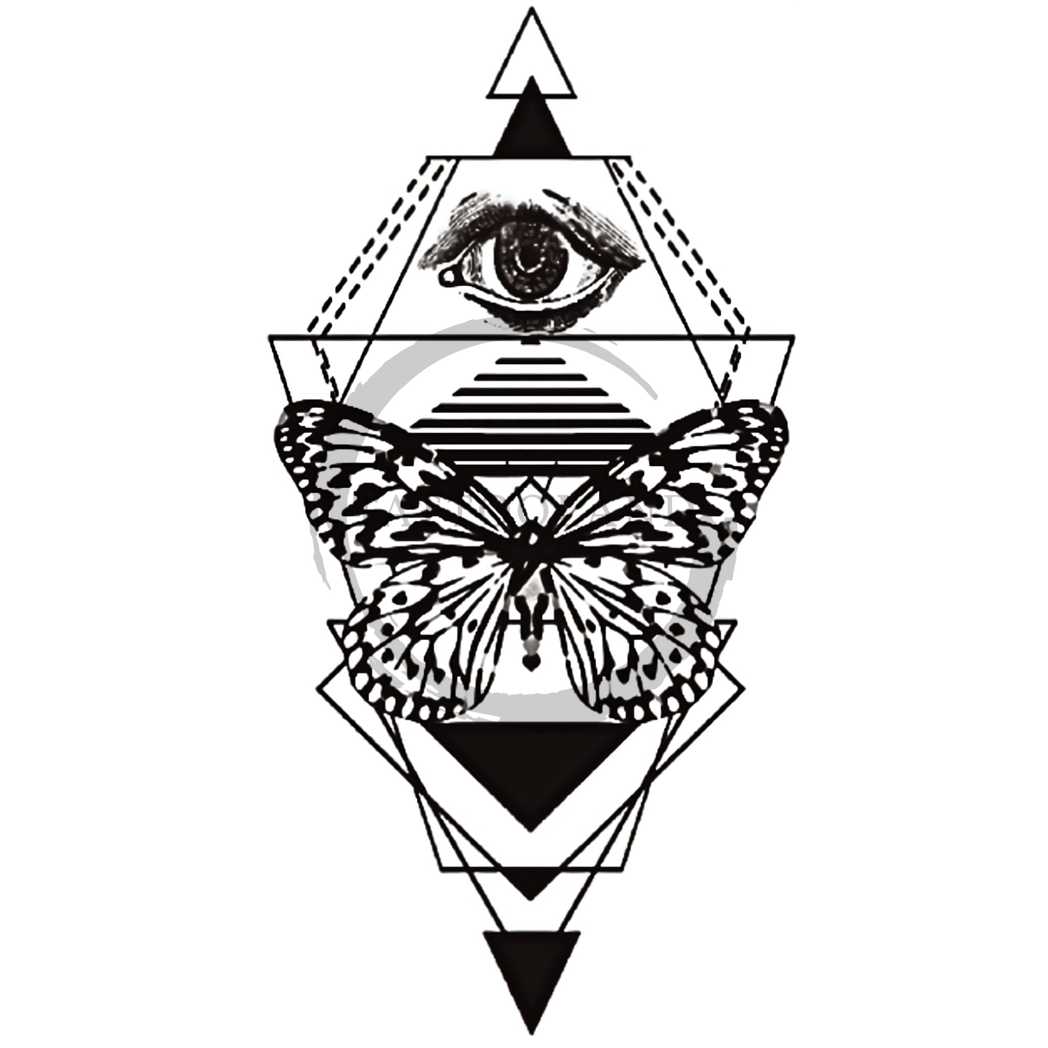 Tímový tetování motýl oko geometrický.